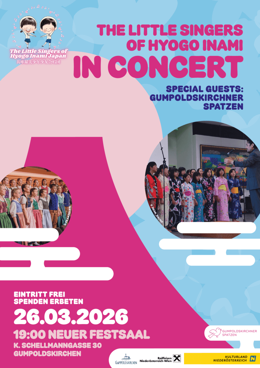 Am Donnerstag, den 26. März 2026 um 19:00 Uhr ist ein ganz besonderer internationaler Gast in der Konzerthalle Gumpoldskirchen zu erleben, der renommierte japanische Kinderchor The Little Singers of Hyogo Inami. Der Chor aus der Präfektur Hyogo verbindet in seinem vielseitigen Programm klassische Chorliteratur mit traditionellen japanischen Liedern und moderner Chormusik und begeistert seit vielen Jahren auf internationalen Bühnen. Das Konzert verspricht nicht nur musikalische Qualität auf höchstem Niveau, sondern auch ein berührendes Wiedersehen im Zeichen einer langjährigen Chorfreundschaft mit den Gumpoldskirchner Spatzen.